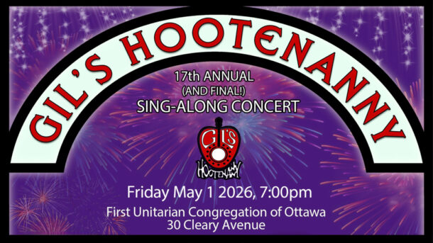 (Ottawa, Ontario, February, 2026) – Gil’s Hootenanny announced today that its 2026 sing-along concert on May 1st will be its last concert in this format. This farewell show will mark the 17th year of this engaging and entertaining May Day sing-along of...